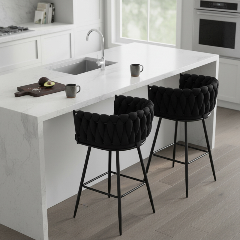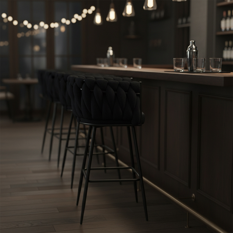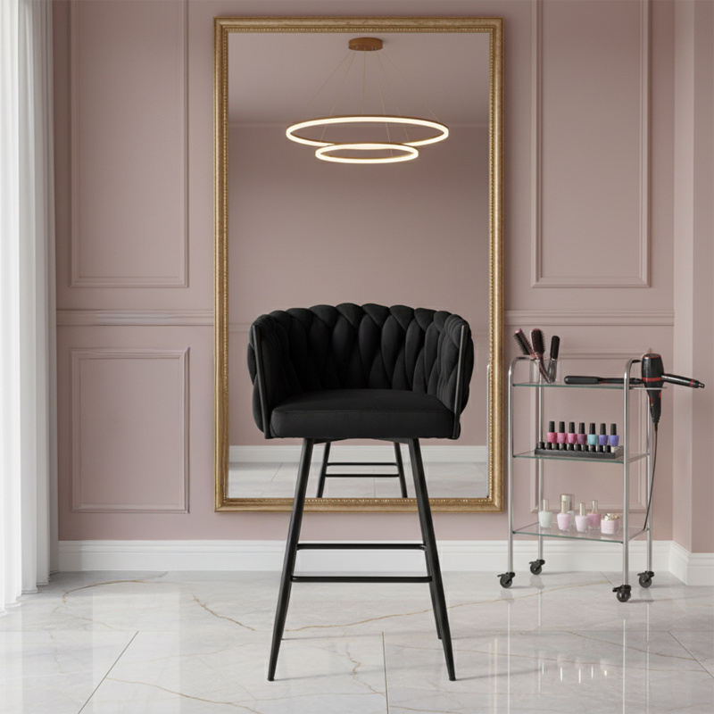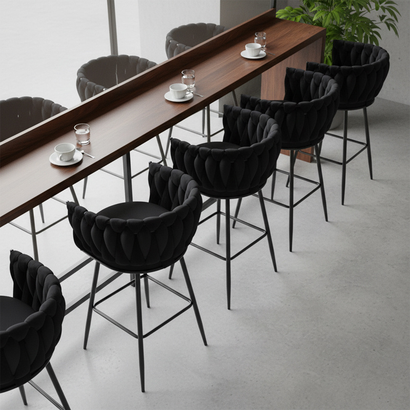 HOKER KRZESŁO BAROWE FERA CZARNY WELUR NOGI CZARNE