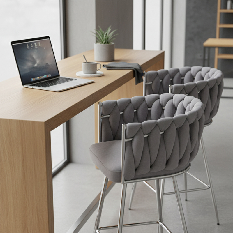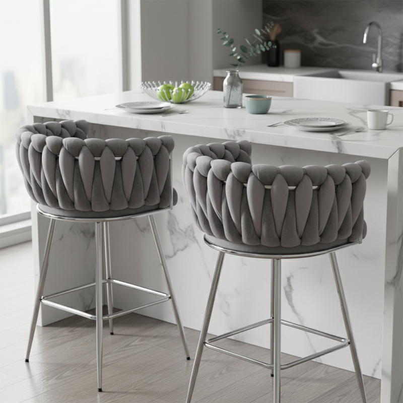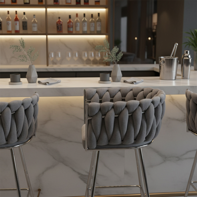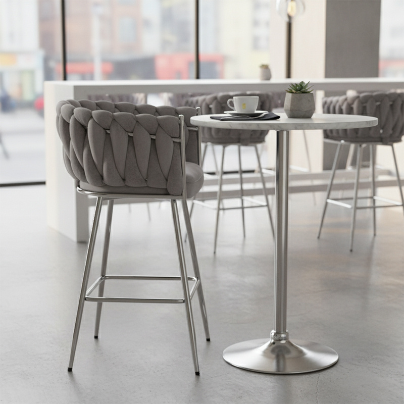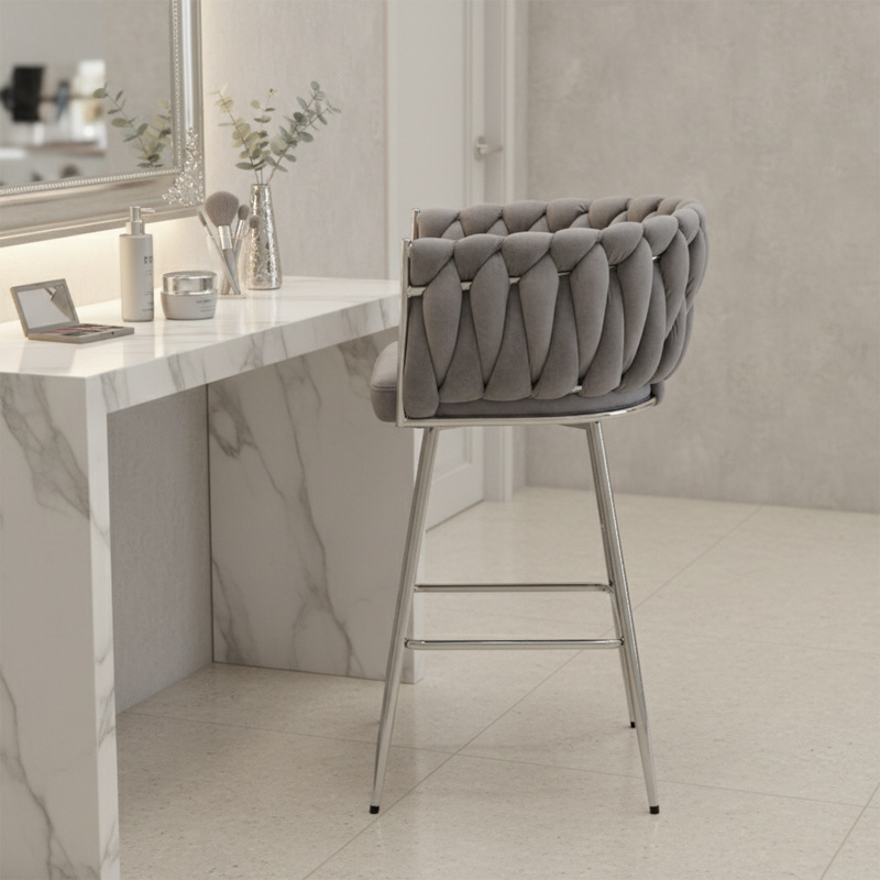 HOKER KRZESŁO BAROWE FERA SZARY WELUR NOGI CHROM