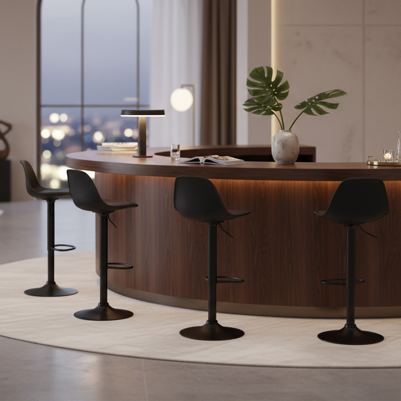 Hoker obrotowy LAZO to elegancki mebel, który wyróżnia się nie tylko swoją funkcjonalnością, ale także wyjątkowym designem. Jego siedzisko wykonane z polipropylenu w połączeniu z czarną nogą i podstawą, nadaje pomieszczeniu eleganckiego stylu, a jego minimalistyczny projekt harmonizuje zarówno z nowoczesnymi, jak i tradycyjnymi wnętrzami. Hoker nie tylko doskonale spełnia swoją rolę jako wygodne miejsce do siedzenia, ale także stanowi efektowny element dekoracyjny, który z łatwością dopasuje się do różnych wnętrz, dodając im nutę luksusu i elegancji.