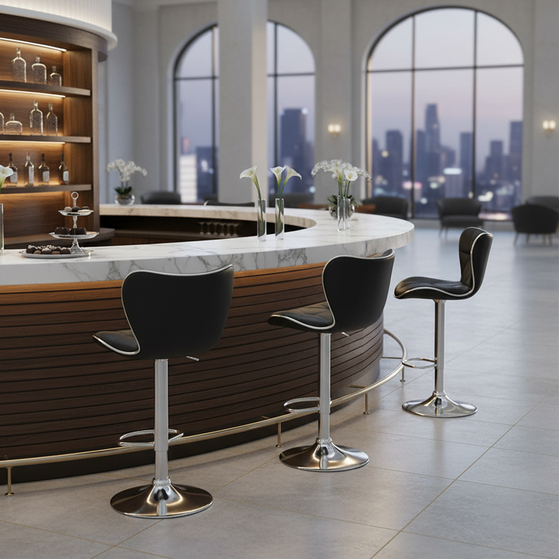 HOKER KRZESŁO BAROWE LUNA CZARNA SKÓRA PU PODSTAWA CHROM LUNA-BL-CH