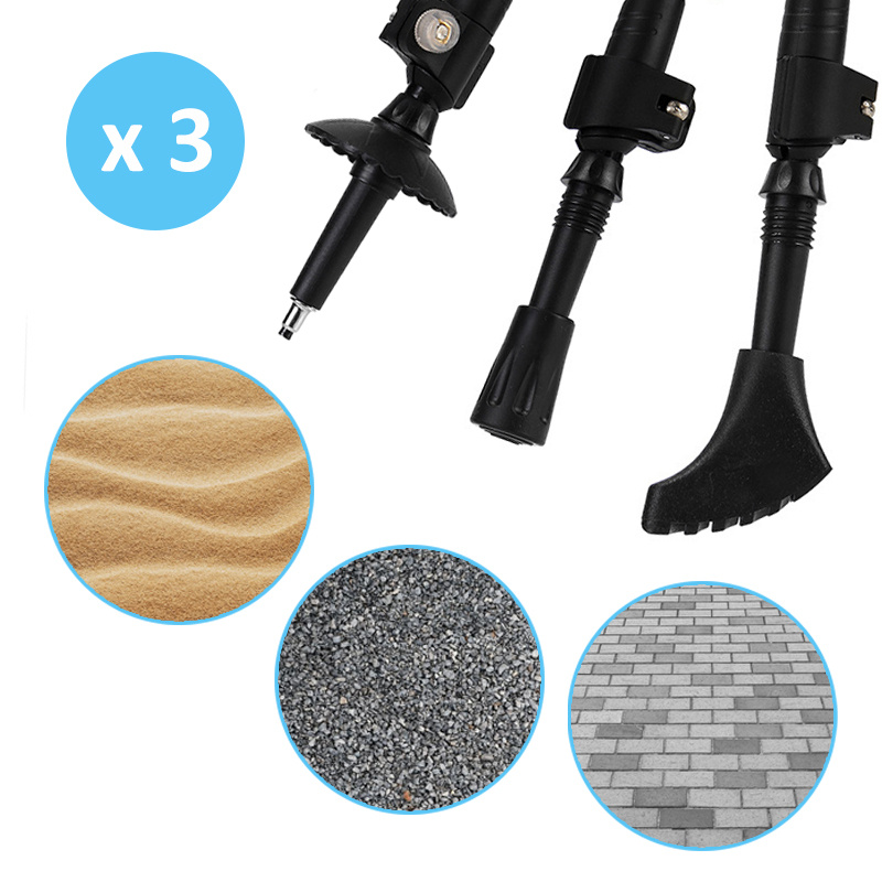 • Adaptacyjność: Wymienne końcówki pozwalają na dostosowanie kijów do różnych nawierzchni, zapewniając optymalną przyczepność