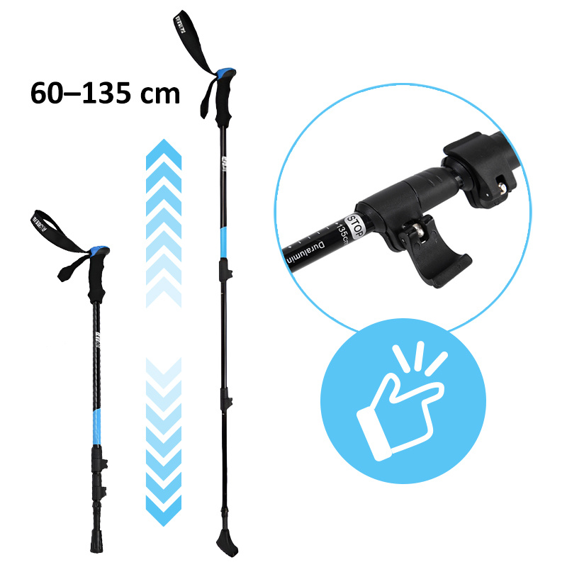 • Konserwacja: Po każdym użyciu oczyść kije z zabrudzeń, zwłaszcza z błota i piasku, aby zapewnić płynne działanie mechanizmów regulacyjnych