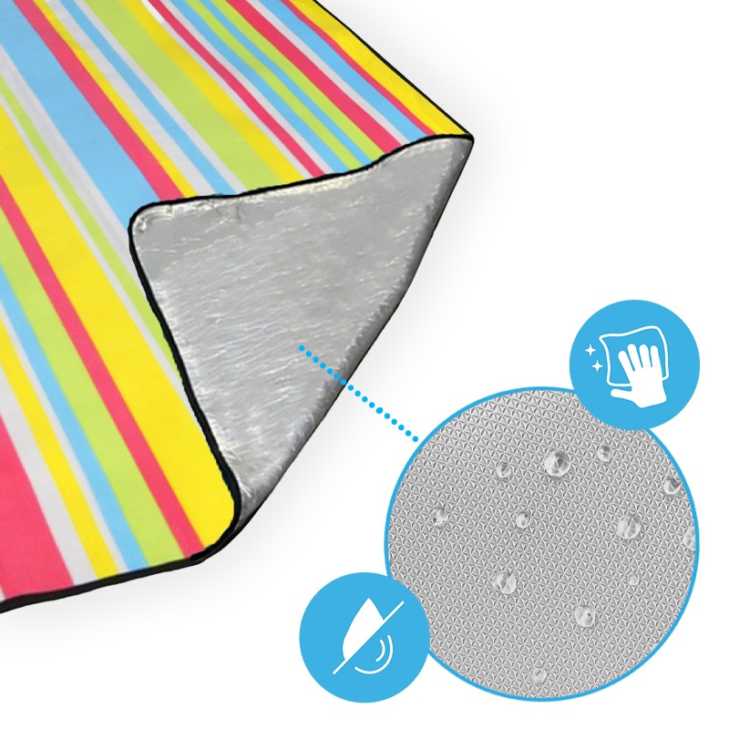 Koc piknikowy wodoodporny Sandy 1D to doskonały wybór dla miłośników pikników i plażowania. Ta mata plażowa o imponujących wymiarach 2m x 2m zapewnia dużo miejsca na rozłożenie się i relaksowanie na plaży, w parku lub na trawie. Niech koc piknikowy wodoodporny Sandy 1D stanie się Twoim niezawodnym towarzyszem podczas rodzinnych pikników, relaksu na plaży i przyjemnego spędzania czasu na świeżym powietrzu.