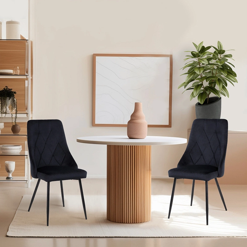 Fotel welurowy Velaco to produkt doskonałej jakości, idealnie łączący komfort z wyjątkową estetyką. Jego prosty, a jednocześnie elegancki design doskonale harmonizuje z nowoczesnym, minimalistycznym oraz skandynawskim wystrojem wnętrz. Sprawdzi się zarówno w jadalni, salonie, jak i sypialni, a jednocześnie nie będzie przytłaczał wystroju wnętrza dzięki swojej lekkiej formie. Fotel został wykonany z wysokiej klasy weluru. Szwy na oparciu pełnią nie tylko rolę praktyczną, ale stanowią też ozdobę i podkreślają wyjątkowy kształt mebla. Krzesło posiada wysokie oparcie zapewniające wygodę w czasie użytkowania, pozwalając na dłuższy odpoczynek i chwile relaksu. Szeroka poduszka siedziska zapewnia miękkość i komfort, dzięki czemu wielogodzinne siedzenie nie będzie stanowić problemu. Stelaż wykonany jest z metalu i pomalowany został proszkowo farbą odporną na ścieranie.