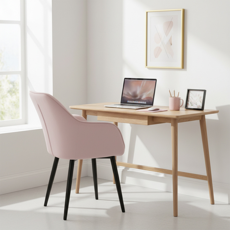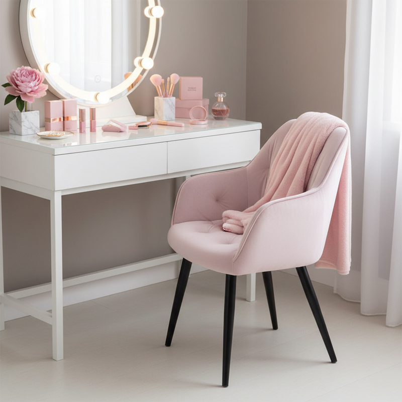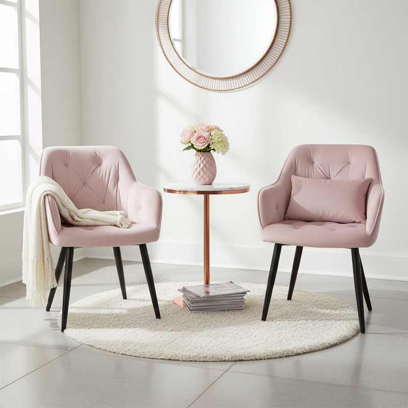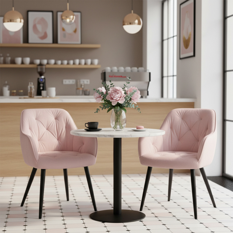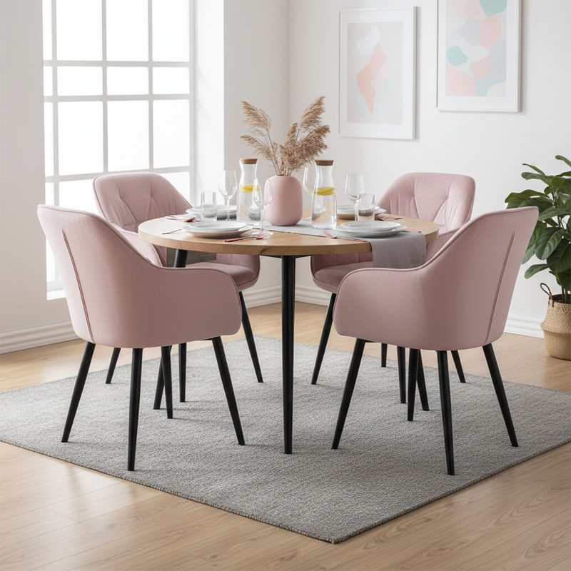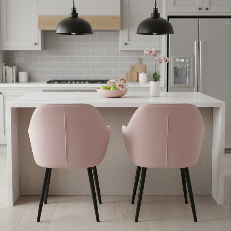 KRZESŁO FOTEL WELUROWY TAPICEROWANY VELA PUDROWY RÓŻ NOGI CZARNE