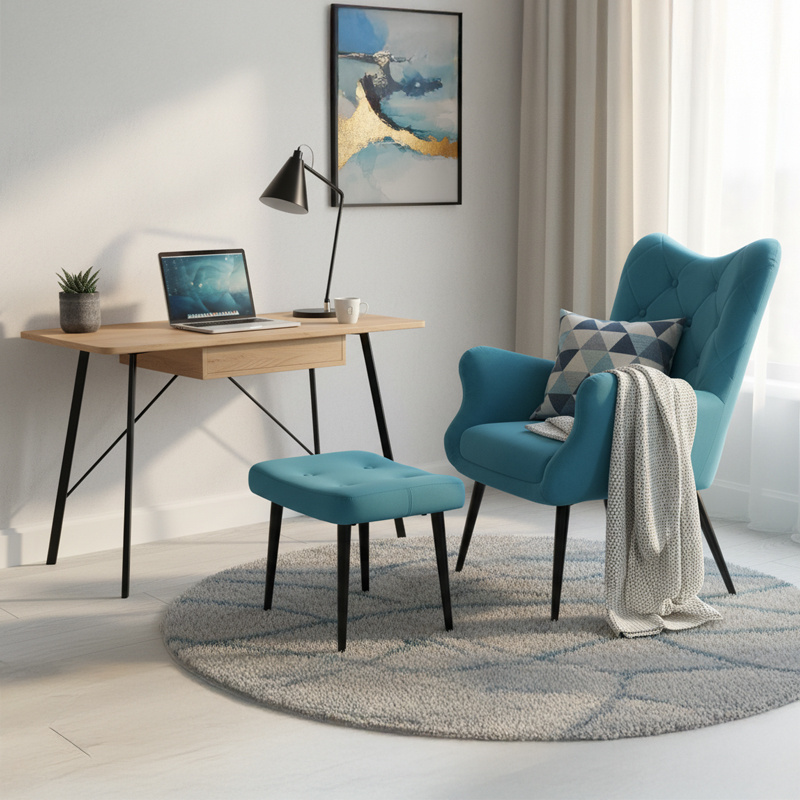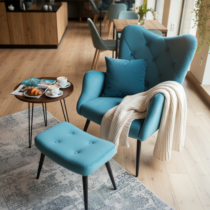 Fotel welurowy Velaco to połączenie stylu, wygody i wysokiej jakości wykonania. Jego elegancki design przyciąga uwagę, doskonale komponując się zarówno z nowoczesnymi, jak i klasycznymi aranżacjami wnętrz. Pikowane oparcie w harmonijnej kolorystyce nadaje pomieszczeniu luksusowy charakter. Miękka, welurowa tkanina jest przyjemna w dotyku, a szerokie, głębokie siedzisko zapewnia wyjątkowy komfort nawet podczas długiego użytkowania. Oparcie wspiera kręgosłup, umożliwiając pełny relaks. Zestaw uzupełnia miękki podnóżek, który podnosi komfort użytkowania, tworząc idealne miejsce do odpoczynku po długim dniu. Solidny, metalowy stelaż gwarantuje stabilność i trwałość, a jego złote wykończenie doskonale współgra z elegancką tapicerką, dodając wnętrzu klasy i wyrafinowania. To idealny wybór dla osób ceniących wygodę, estetykę i jakość wykonania.