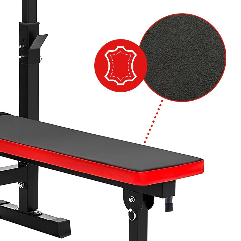 Ławka w barwach czerwono-czarnych nie tylko wygląda profesjonalnie, ale także dodaje stylu Twojej domowej siłowni.