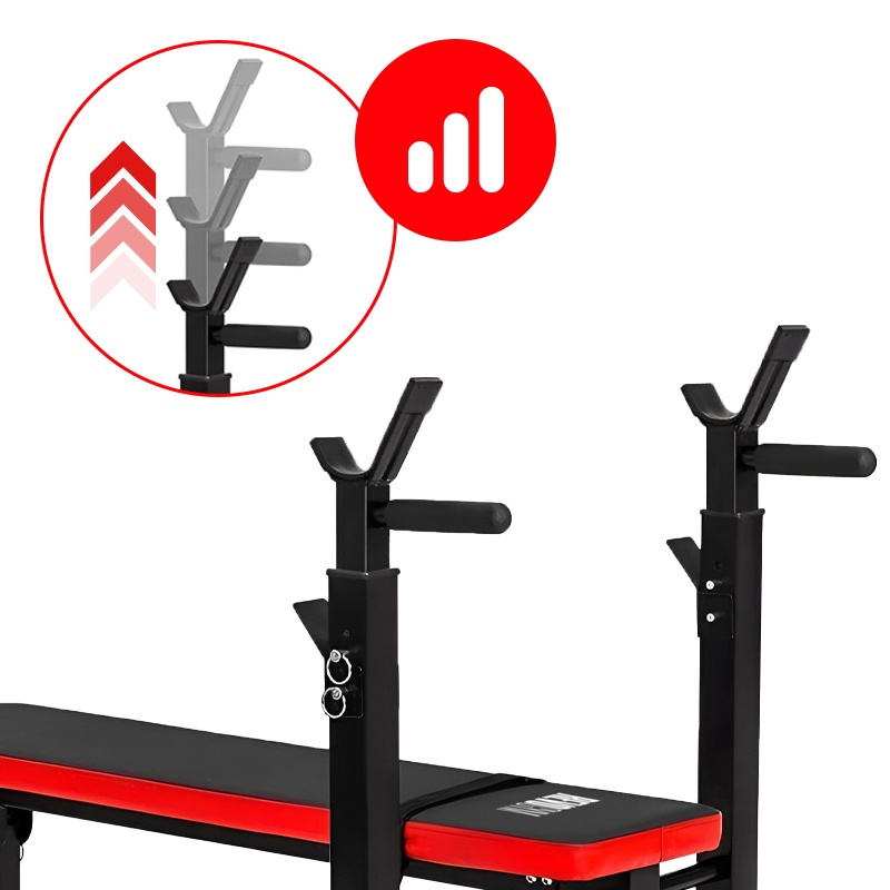 Ważąca tylko 17,5 kg, ławka jest łatwa w przenoszeniu, a jej funkcja składania sprawia, że doskonale nadaje się do domów z ograniczoną przestrzenią.