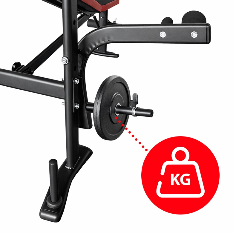 Dwuczęściowa budowa ławki pozwala na niezależną regulację oparcia, dzięki czemu możliwe jest ćwiczenie zarówno w pozycji płaskiej, jak i skośnej, z zachowaniem prawidłowej ergonomii ruchu.