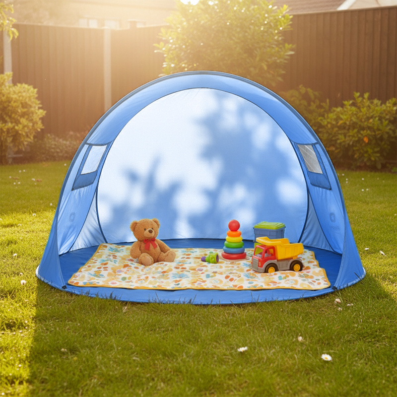 Rozłożenie namiotu plażowego Sunset zajmuje mniej niż minutę. Po wyjęciu z pokrowca, namiot sam się rozkłada i w ciągu sekundy nadaje się do użytkowania. Dzięki temu możesz szybko cieszyć się swoją przestrzenią wypoczynkową na plaży lub w ogrodzie, bez straty czasu na skomplikowany montaż.