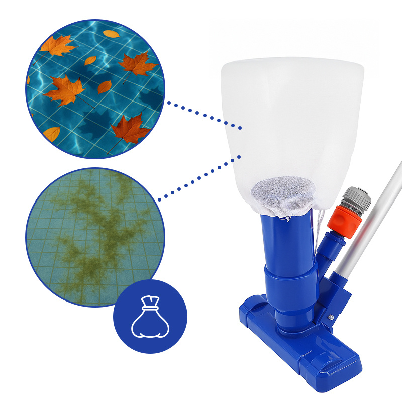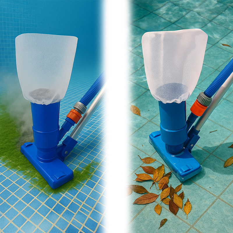 Siatka i urządzenie do czyszczenia dna umożliwiają skuteczne usuwanie zanieczyszczeń, takich jak liście, owady i inne drobne elementy, które mogą osadzać się na dnie i powierzchni wody.