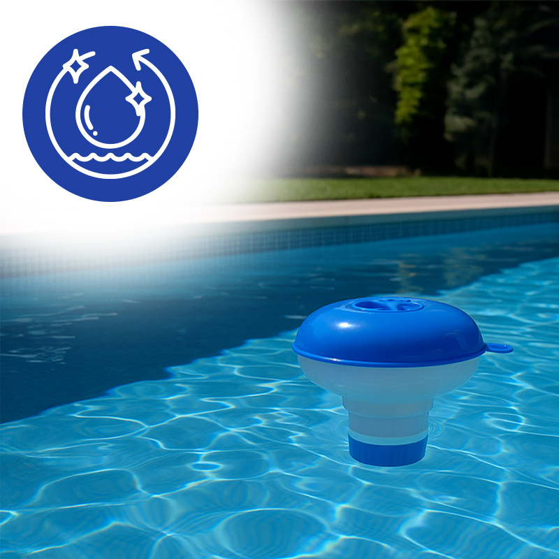 Przystosowany do tabletek chlorowych lub multifunkcyjnych. Utrzymuje się na powierzchni wody i stopniowo uwalnia środek chemiczny, pomagając utrzymać odpowiedni poziom dezynfekcji i klarowność wody w basenie.