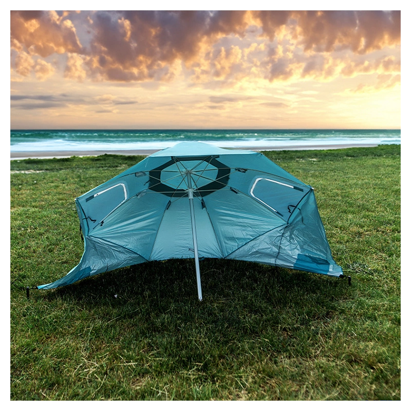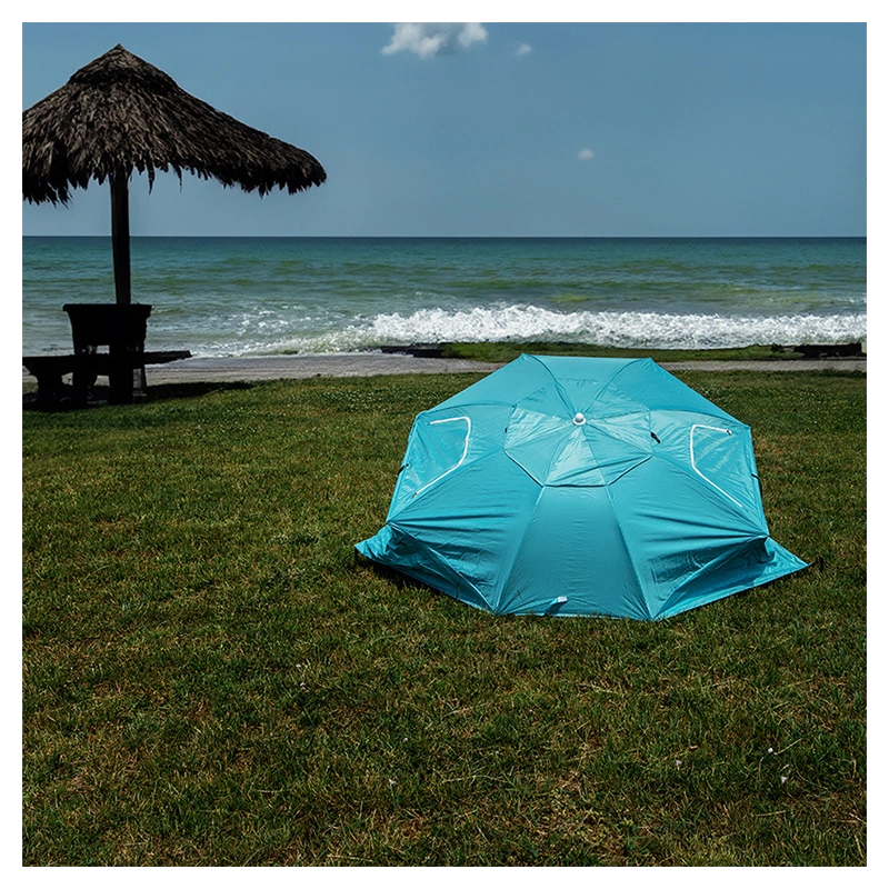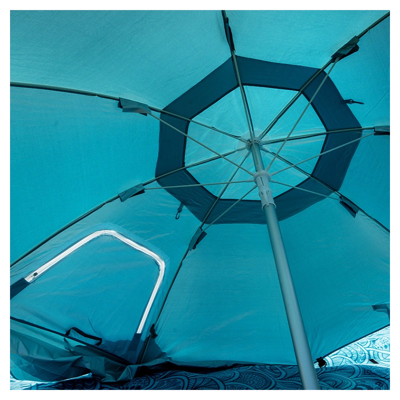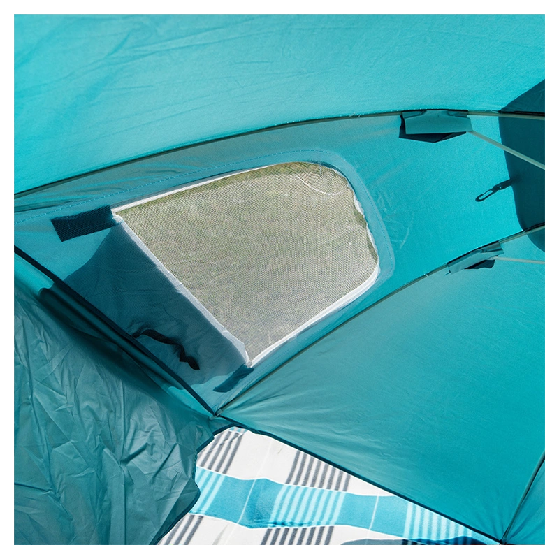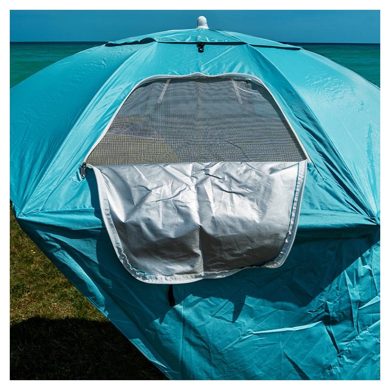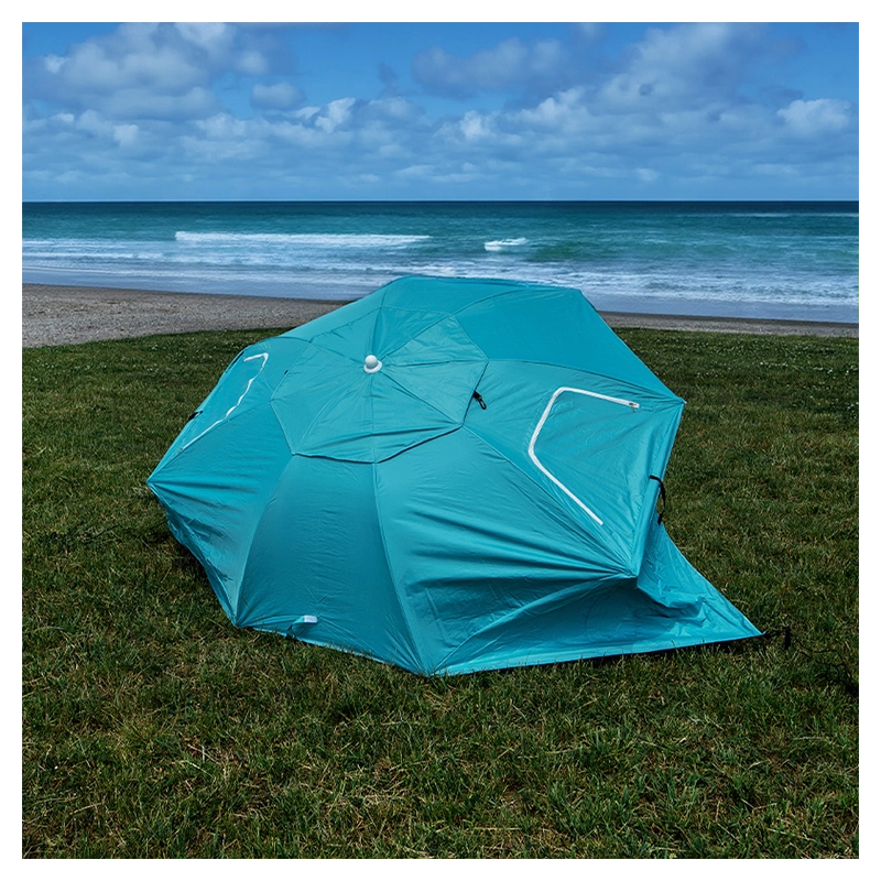 Parasol Triton posiada solidną 8-segmentową konstrukcję czaszy, co zapewnia mu stabilność nawet w przypadku lekkiego wiatru. Dzięki temu można cieszyć się zacienionym miejscem do odpoczynku, nie martwiąc się o przewrócenie parasola. Dzięki możliwości przyczepienia namiotu w podłożu za pomocą śledzi, uzyskujemy dodatkową stabilność konstrukcji. Śledzie zapewniają pewne i solidne mocowanie namiotu, co chroni go przed przesunięciem się lub przewróceniem pod wpływem lekkiego wiatru.