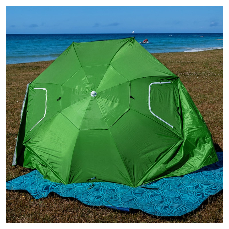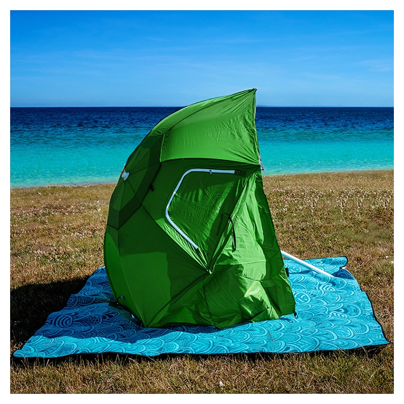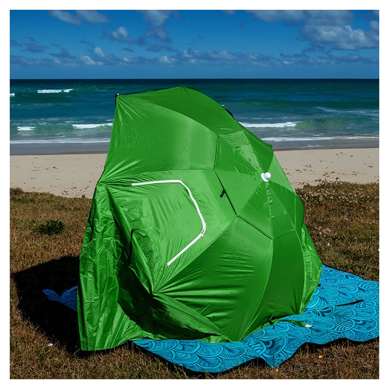 Parasol Triton posiada solidną 8-segmentową konstrukcję czaszy, co zapewnia mu stabilność nawet w przypadku lekkiego wiatru. Dzięki temu można cieszyć się zacienionym miejscem do odpoczynku, nie martwiąc się o przewrócenie parasola. Dzięki możliwości przyczepienia namiotu w podłożu za pomocą śledzi, uzyskujemy dodatkową stabilność konstrukcji. Śledzie zapewniają pewne i solidne mocowanie namiotu, co chroni go przed przesunięciem się lub przewróceniem pod wpływem lekkiego wiatru.