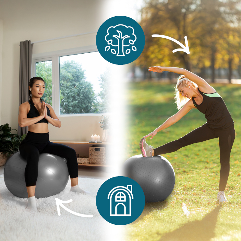 • Poprawa równowagi: Ćwiczenia na niestabilnej powierzchni piłki angażują mięśnie stabilizujące, co wpływa na lepszą równowagę