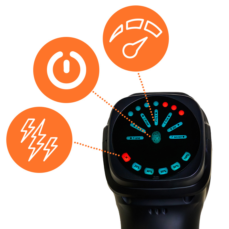 Dzięki zastosowaniu chipu Ai, pistolet automatyczne dostosuje intensywność wibracji w zależności od nacisku, co zwiększa skuteczność masażu i zapobiega urazom.