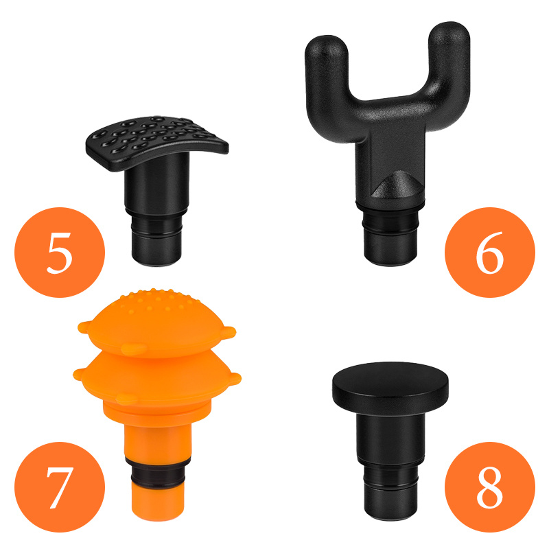 Każda głowica jest przeznaczona do innego rodzaju masażu, co pozwala na precyzyjne dostosowanie zabiegu do potrzeb użytkownika: od masażu relaksacyjnego po głęboką terapię mięśni.