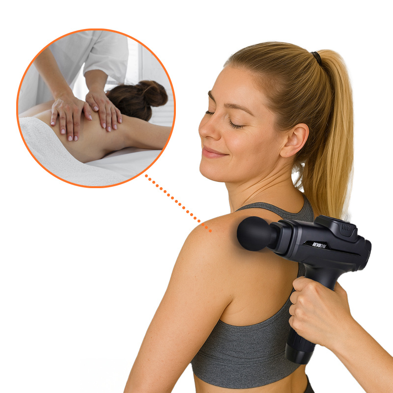 Masażer może być używany na różne partie ciała: plecy, kark, stopy, ramiona, uda, a nawet brzuch. Dzięki temu jest odpowiedni zarówno do regeneracji mięśni po wysiłku, jak i do codziennego relaksu.
