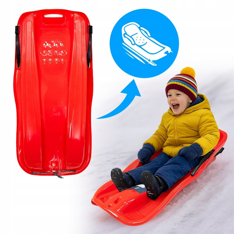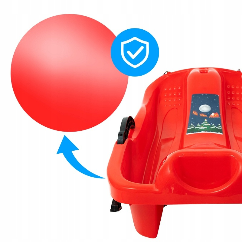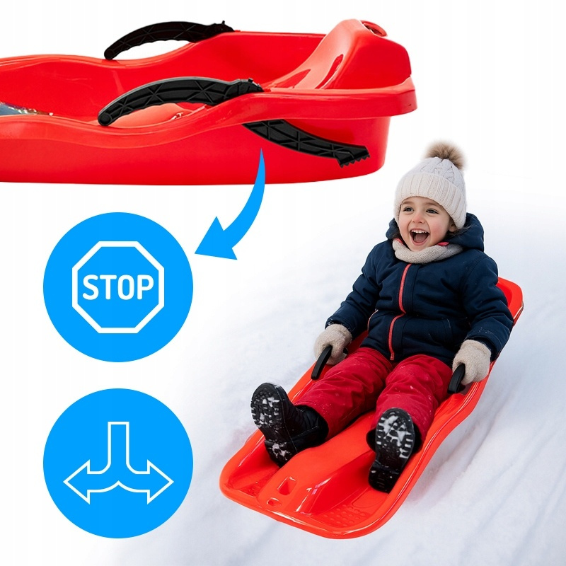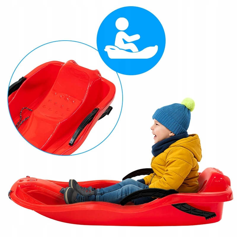 Wyprofilowane siedzisko oraz wygodne oparcie zapewniają dziecku stabilną i bezpieczną pozycję podczas jazdy. Dzięki temu zjazdy są nie tylko komfortowe, ale także mniej męczące nawet przy dłuższej zabawie na śniegu.