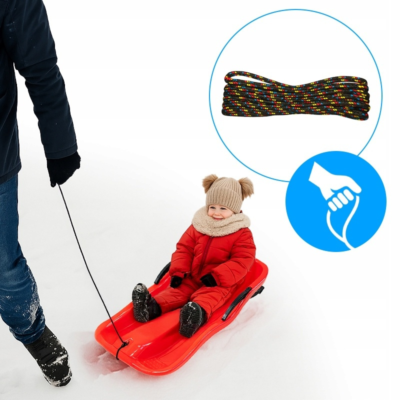 Dzięki dołączonemu sznurkowi transport sanek staje się wygodny i szybki. Rodzice mogą z łatwością ciągnąć sanki pod górkę lub przewozić je w inne miejsce, a dzieci zyskują dodatkową frajdę z jazdy w roli pasażera.