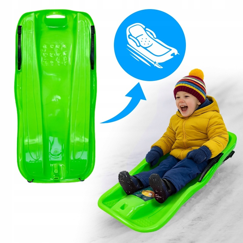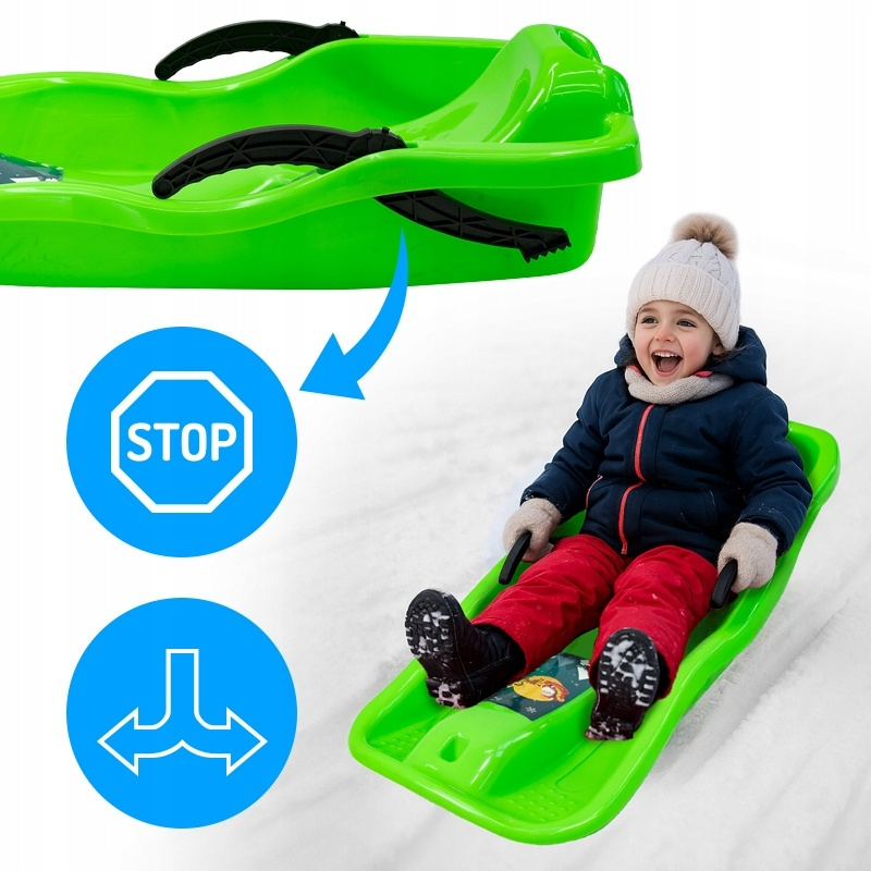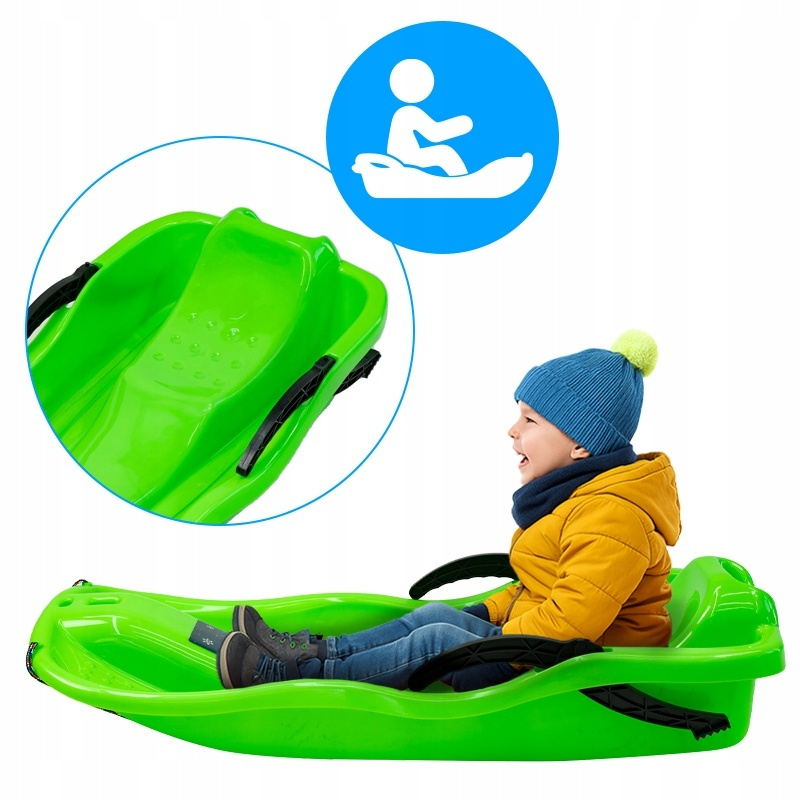 Wyprofilowane siedzisko oraz wygodne oparcie zapewniają dziecku stabilną i bezpieczną pozycję podczas jazdy. Dzięki temu zjazdy są nie tylko komfortowe, ale także mniej męczące nawet przy dłuższej zabawie na śniegu.