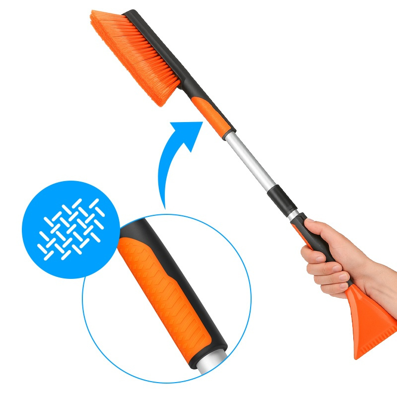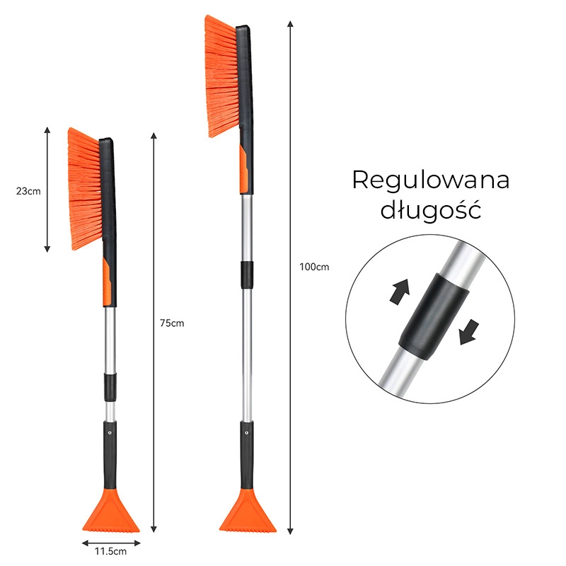 SZCZOTKA SKROBACZKA DO SAMOCHODU 2W1 TELESKOPOWA REGULOWANA ODYN CZARNO-POMARAŃCZOWA 75-110 CM