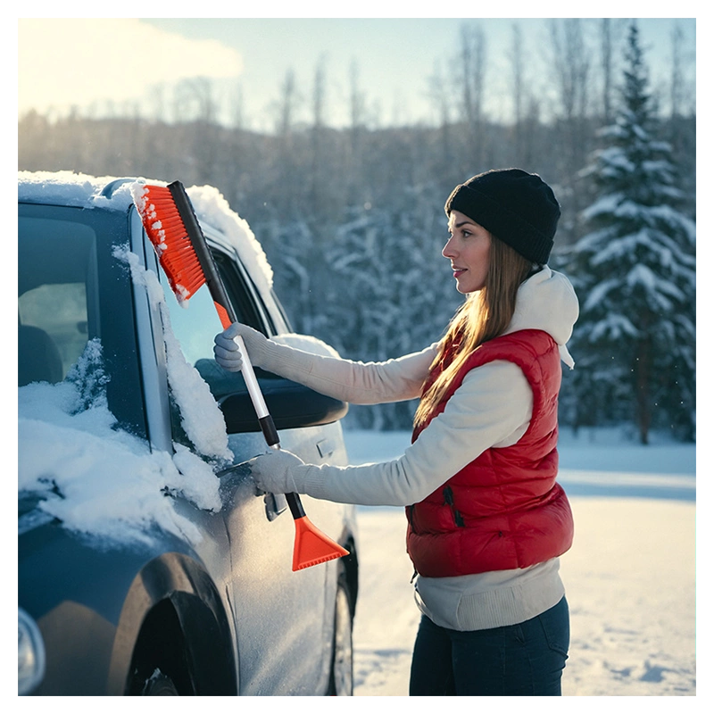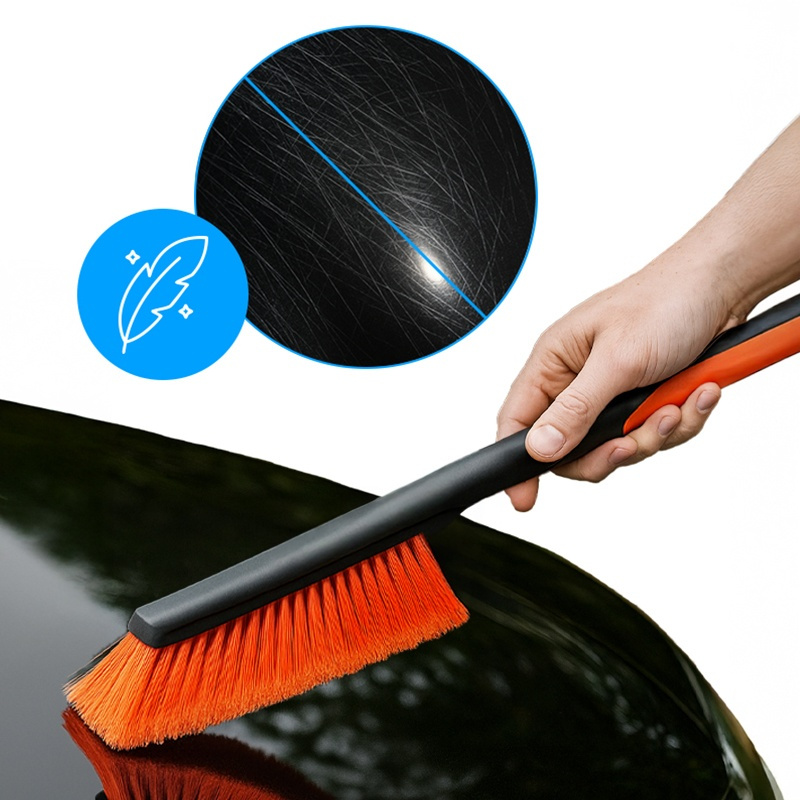 Szczotka wykonana z wysokiej jakości tworzywa sztucznego zachowuje elastyczność i skuteczność nawet przy bardzo niskich temperaturach. Jej mocne włosie pozwala bez wysiłku usuwać śnieg z karoserii i elementów nadwozia, zapewniając szybkie i wygodne odśnieżanie.