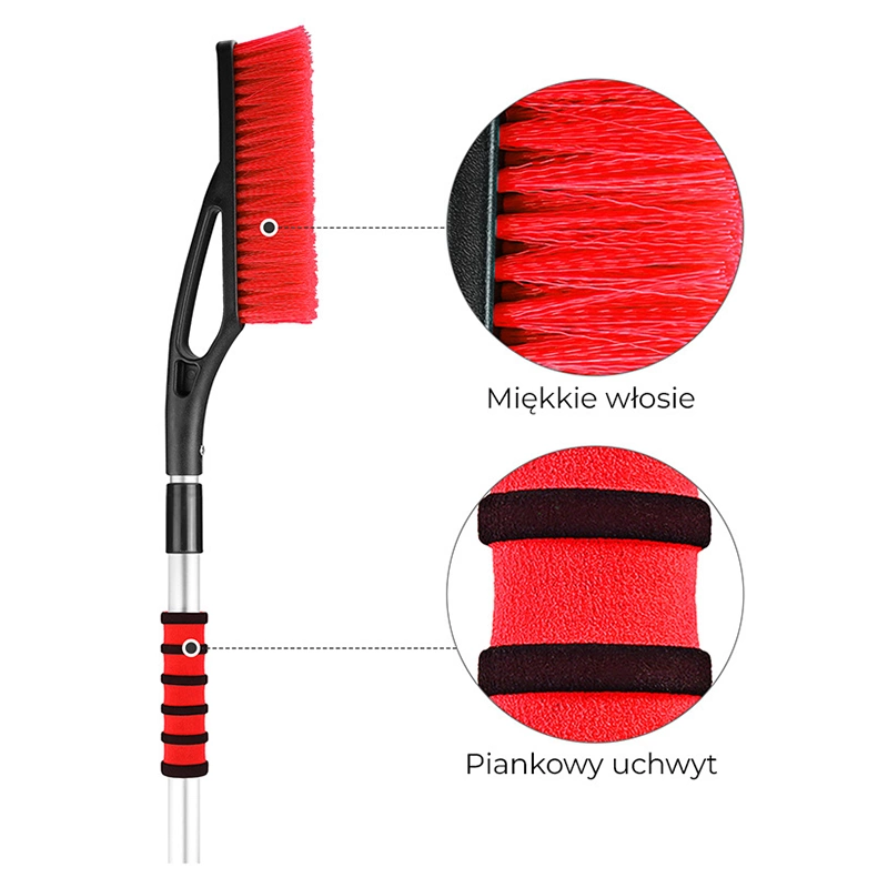 SZCZOTKA SKROBACZKA DO SAMOCHODU 2W1 TELESKOPOWA REGULOWANA THOR CZARNO-CZERWONA 87-122 CM