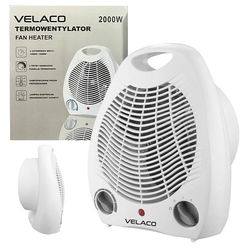 Termowentylator elektryczny marki Velaco to doskonałe urządzenie, które błyskawicznie dostarczy ciepło do Twojego pomieszczenia. Posiada dwustopniową regulację mocy o wartościach 1000 W i 2000 W, co pozwala dostosować pracę urządzenia do własnych potrzeb i warunków atmosferycznych. Termowentylator może być używany zarówno w trybie nawiewu ciepłego, jak i zimnego, dzięki czemu stanowi praktyczne rozwiązanie nie tylko w zimie, ale także w okresie letnim. Urządzenie wyposażono w termostat elektromechaniczny, który gwarantuje efektywne i wydajne działanie termowentylatora. Termostat ułatwia także dostosowanie odpowiedniej temperatury, zapewniając użytkownikowi maksymalny komfort termiczny i pozwalając jednocześnie oszczędzać energię. Dodatkowo, termowentylator został wyposażony w zabezpieczenie przed przegrzaniem, co stanowi istotny element zapewniający bezpieczeństwo podczas użytkowania urządzenia. Urządzenie naszej marki to nie tylko efektywny, ale także bezpieczny sposób na ogrzewanie pomieszczenia, który dostosowuje się do Twoich potrzeb przez cały rok.