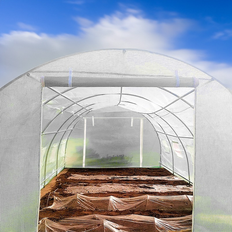 Dzięki możliwości odsłaniania okien z moskitierą, możemy bardziej kontrolować nasze uprawy. W razie potrzeby, możemy zwiększyć ilość wpadającego światła. Otwarte okna pozytywnie wpływają na cyrkulację powietrza i kontrolę temperatury wewnątrz tunelu. Gorące powietrze, które jest lżejsze, unosi się ku górze i ulatuje przez odsłonięte okna, co zapewnia optymalne warunki dla naszych upraw.