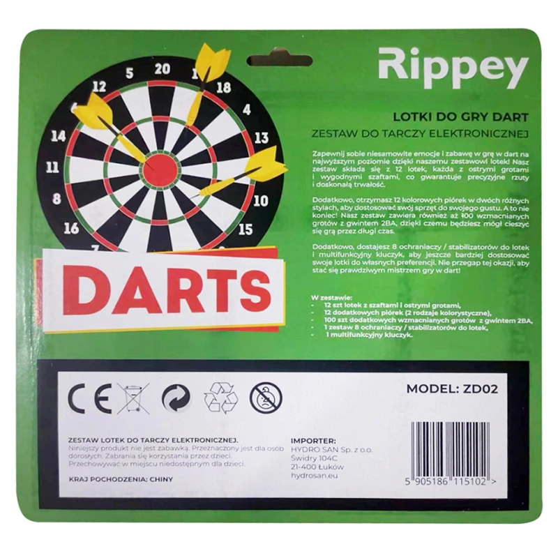 Zestaw 12 rzutek do tarczy elektronicznej marki Rippey to doskonały wybór dla pasjonatów gry w dart, którzy dążą do osiągnięcia wyższego poziomu w tej dyscyplinie. Nie tylko zapewnia on znakomitą jakość wykonania, ale także oferuje szeroki zestaw akcesoriów, które podniosą jakość i wydajność Twojej rozgrywki. Dzięki temu zestawowi będziesz miał wszystko, czego potrzebujesz do osiągnięcia swoich celów w grze w dart.