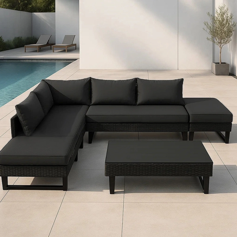 ZESTAW MEBLI OGRODOWYCH RATTANOWE LIME 5 OSOBOWE CZARNY
