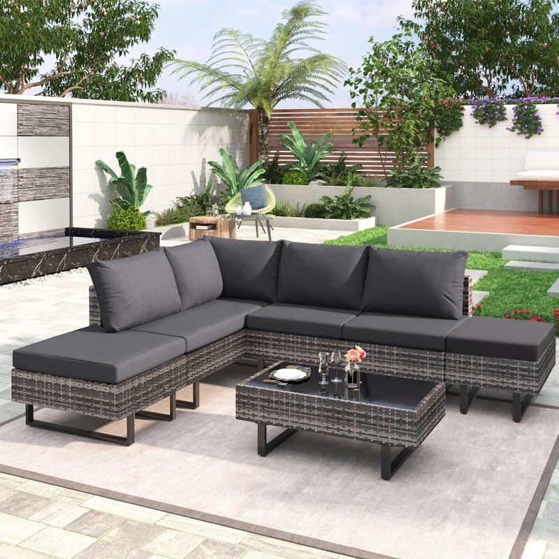 ZESTAW MEBLI OGRODOWYCH RATTANOWE LIME 5 OSOBOWE SZARY