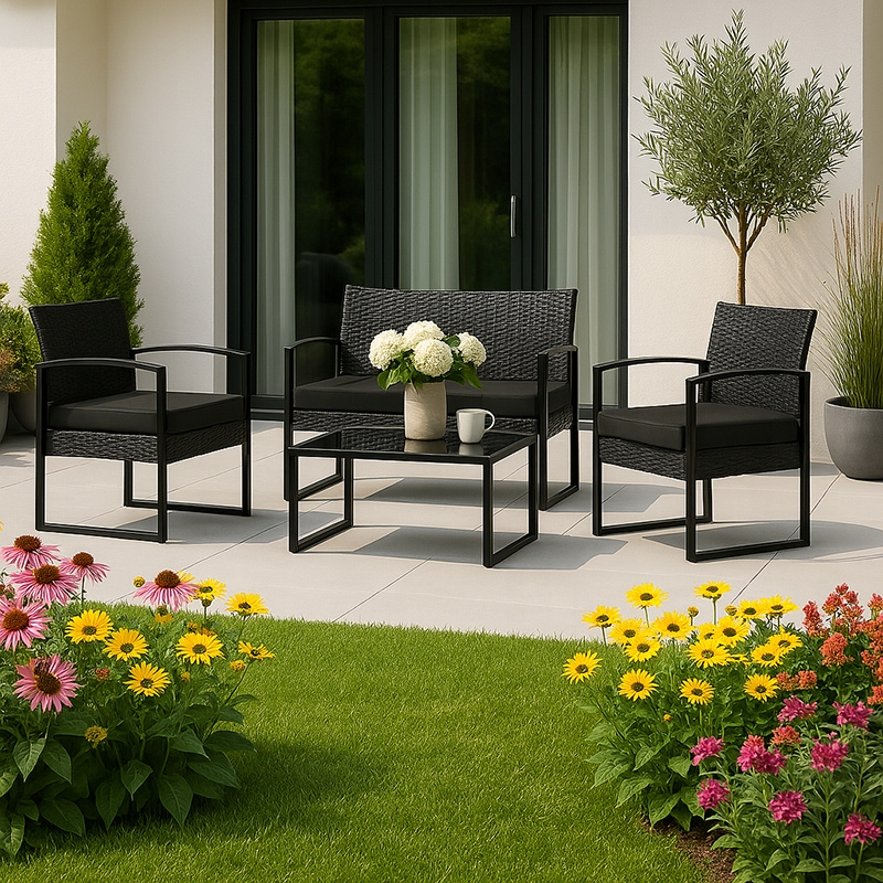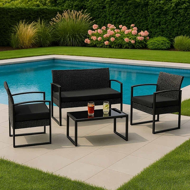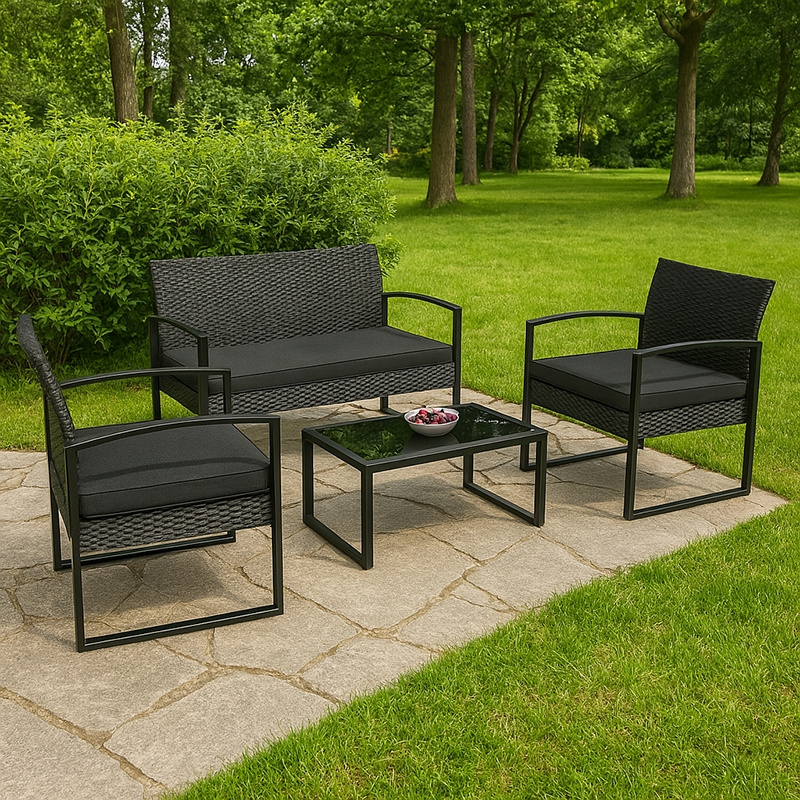 ZESTAW MEBLI OGRODOWYCH RATTANOWY ATLAS 4 OSOBOWY CZARNY