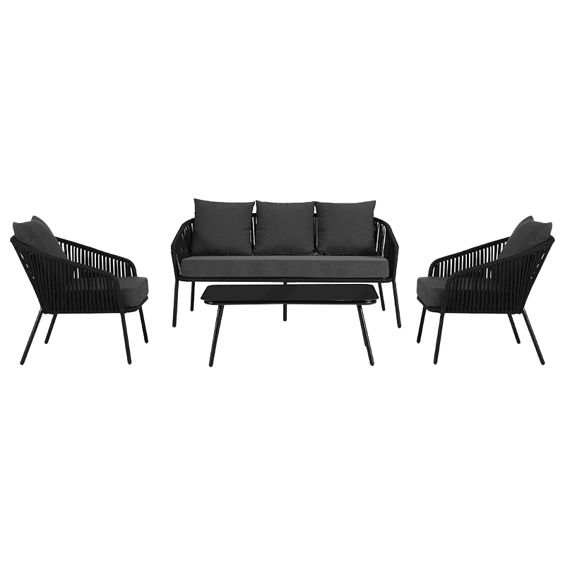 ZESTAW MEBLI OGRODOWYCH SIERRA CZARNY 5 OSOBOWY STOLIK FOTELE SOFA